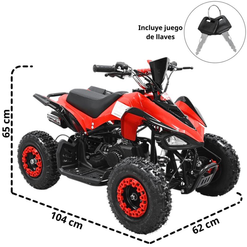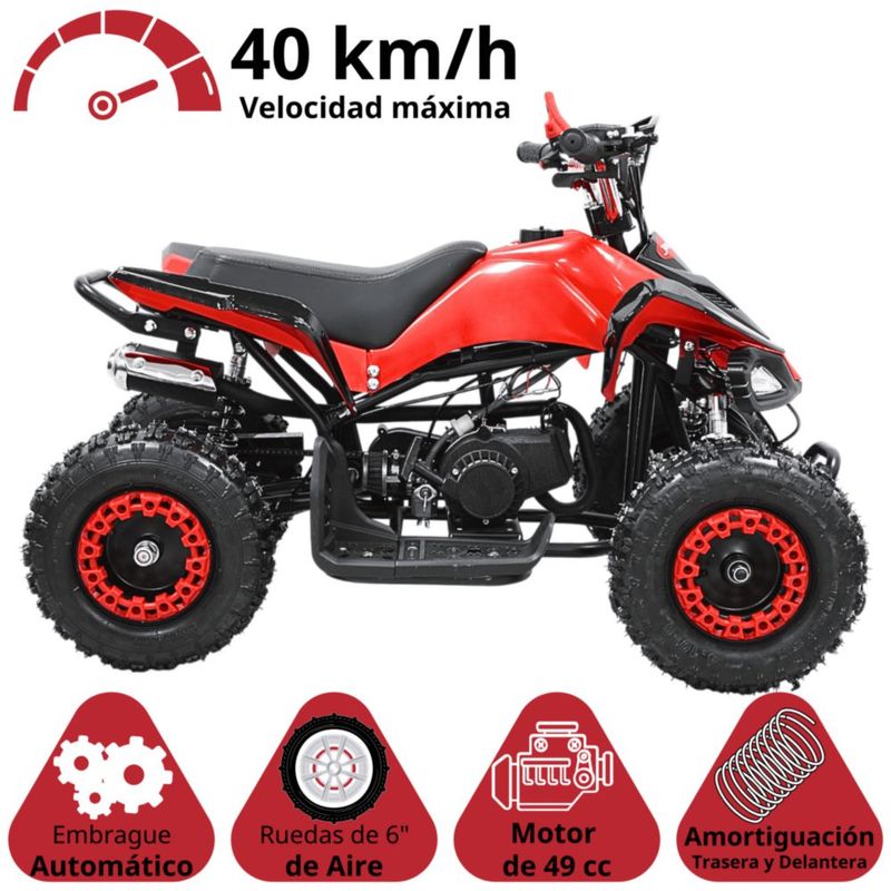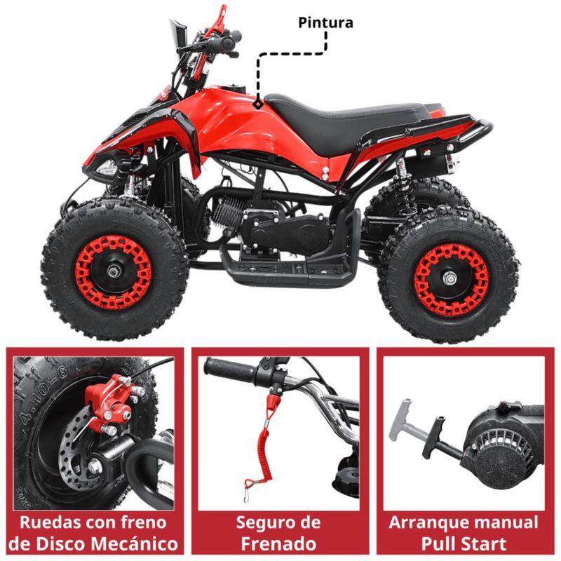 Cuatrimoto a Gasolina 49 cc 2T Arranque Manual Doble Freno de Disco Embrague Automático Carga Máx 80 kg Hasta 40 km/h - Rojo