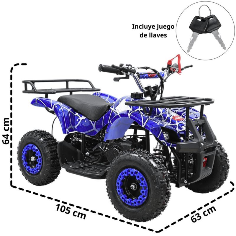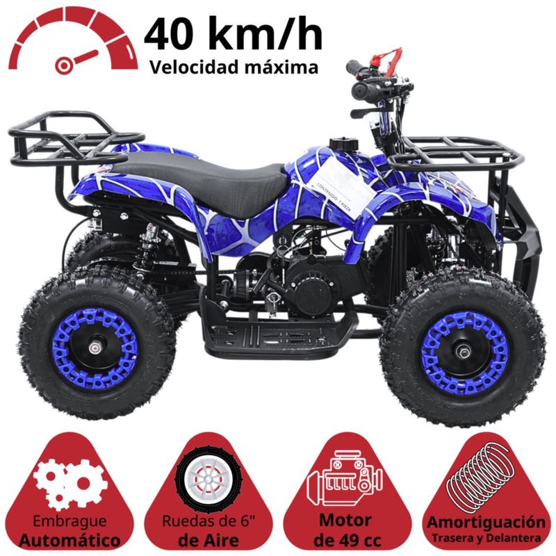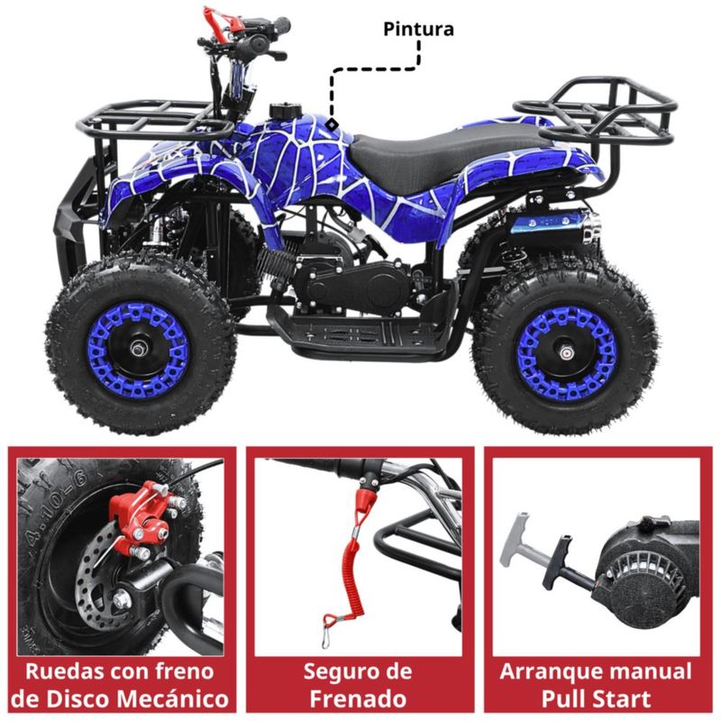 Cuatrimoto a Gasolina 49cc 2T Suspensión de Resorte Arranque Manual Freno de Disco Carga Máx 80 kg Hasta 40 km/h - Azul Spider