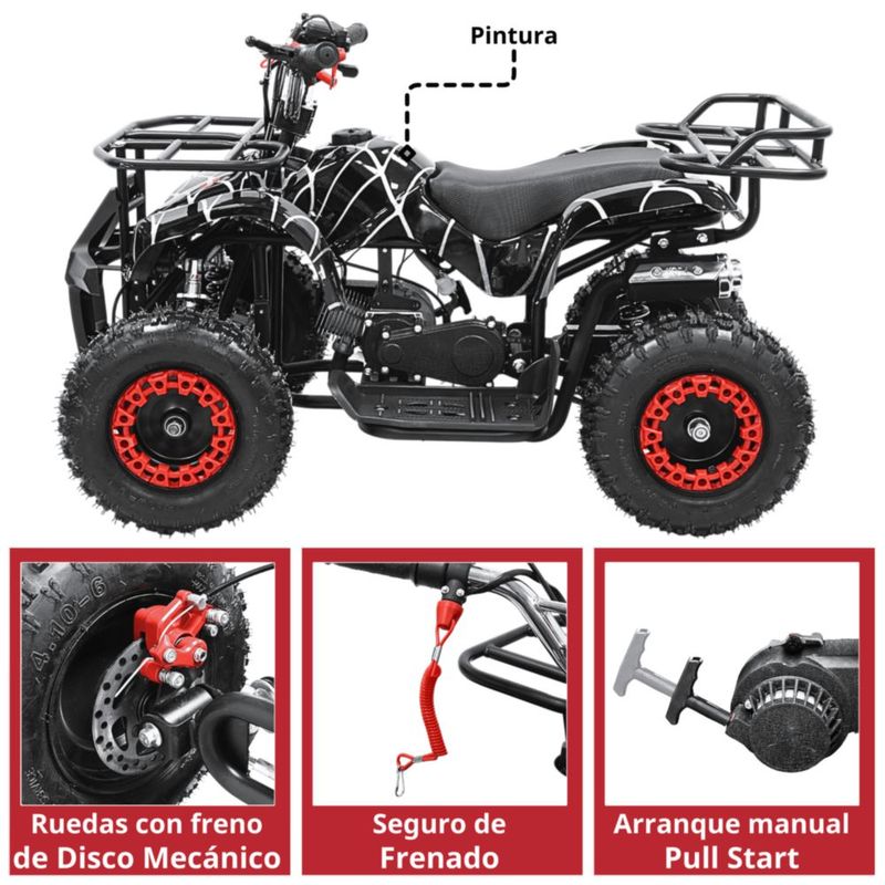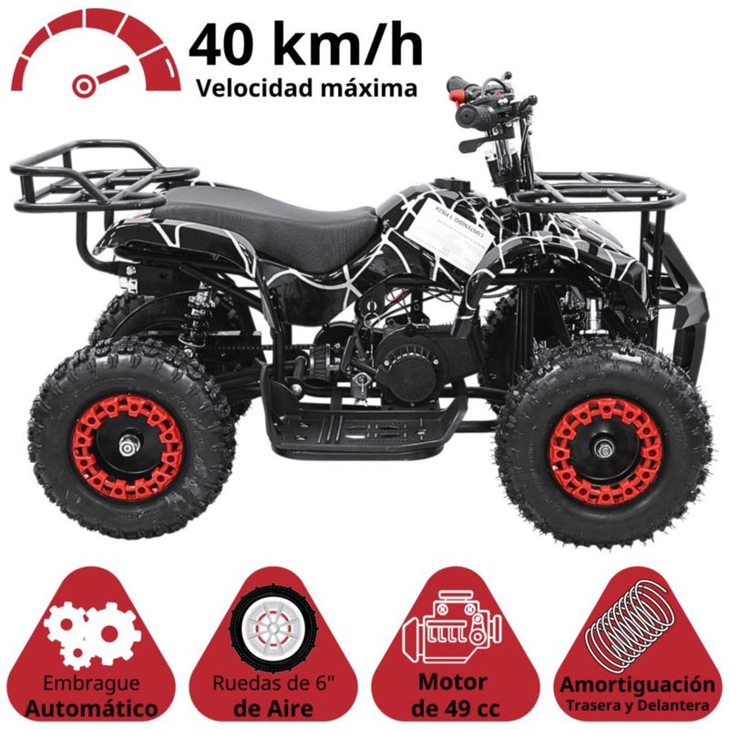 Cuatrimoto a Gasolina 49cc 2T Suspensión de Resorte Arranque Manual Freno de Disco Carga Máx 80 kg Hasta 40 km/h - Negro Spider