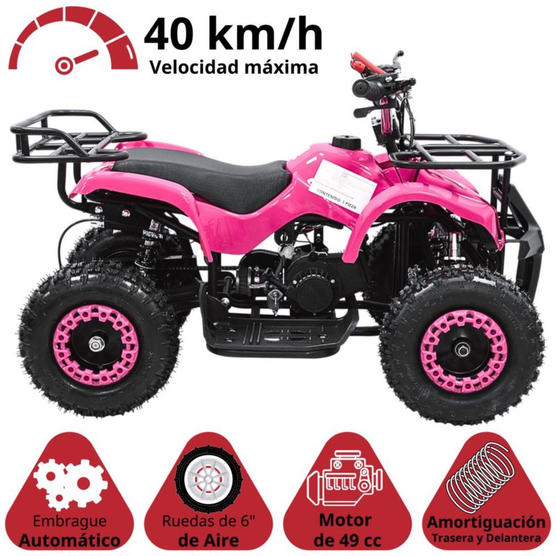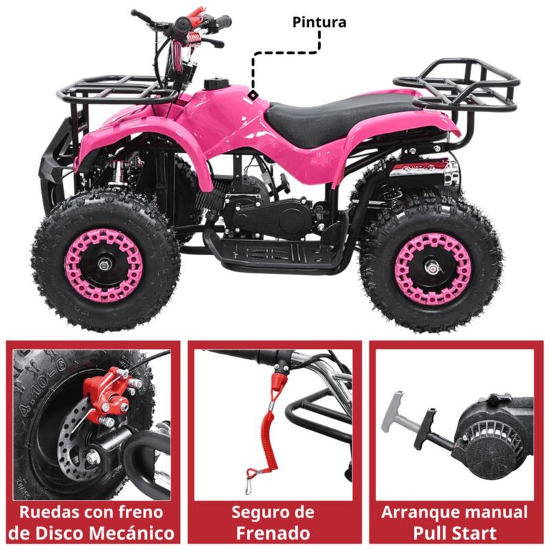 Cuatrimoto a Gasolina 49cc 2T Suspensión de Resorte Arranque Manual Freno de Disco Carga Máx 80 kg Hasta 40 km/h - Rosa
