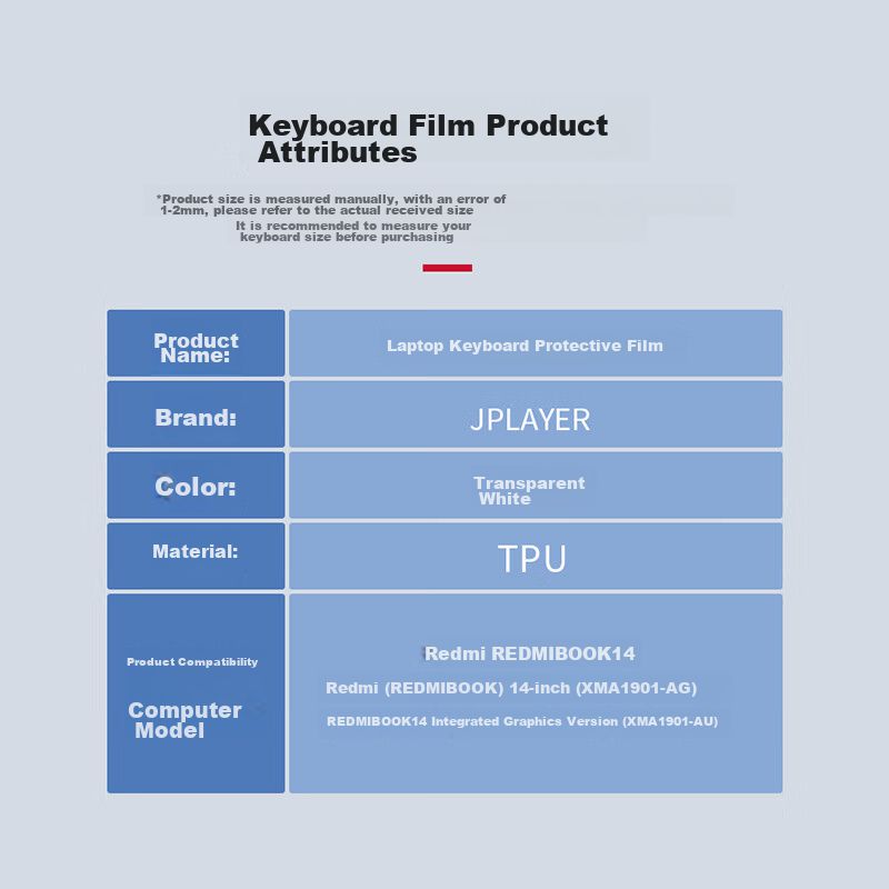 CómputoTablets y AccesoriosAccesoriosCubierta De Teclado Jplayer Para Laptop Xiaomi Redmibook 14 2022 Transparente