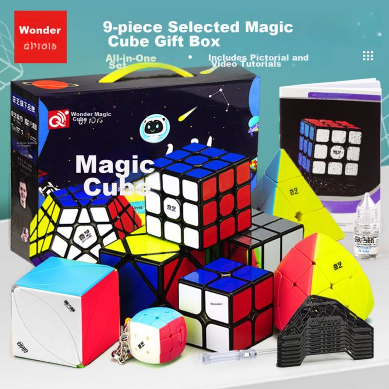 Cubos Rubik QIYI Set 9 Piezas 2x2, 3x3, 4x4, Pyraminx de plástico