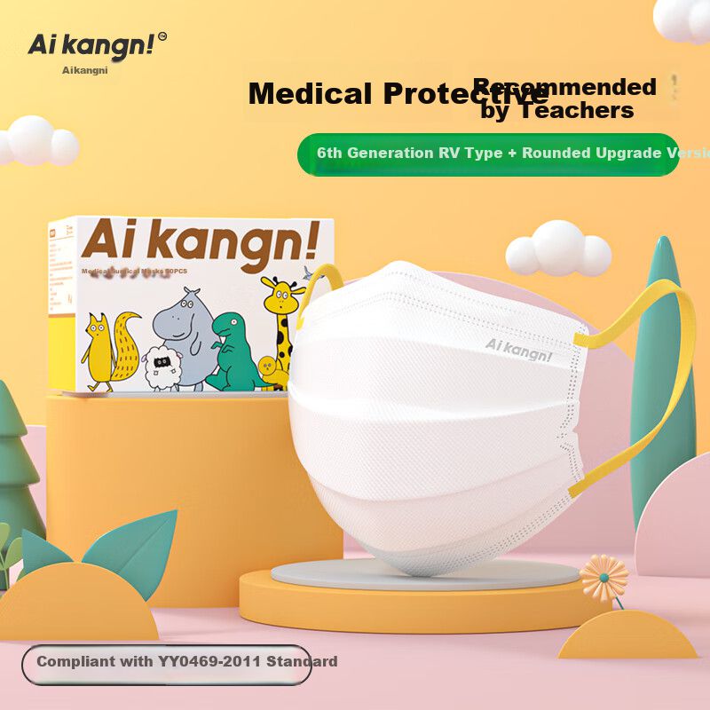 Salud y Equipamiento MédicoFarmaciaCubrebocasCubrebocas Aikangni Quirúrgico Niños Blanco 50 Pzas
