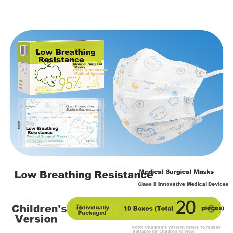 Salud y Equipamiento MédicoFarmaciaCubrebocasCubrebocas Chao Ya Quirúrgico Baja Resistencia Respiratoria Para Niños Unisex