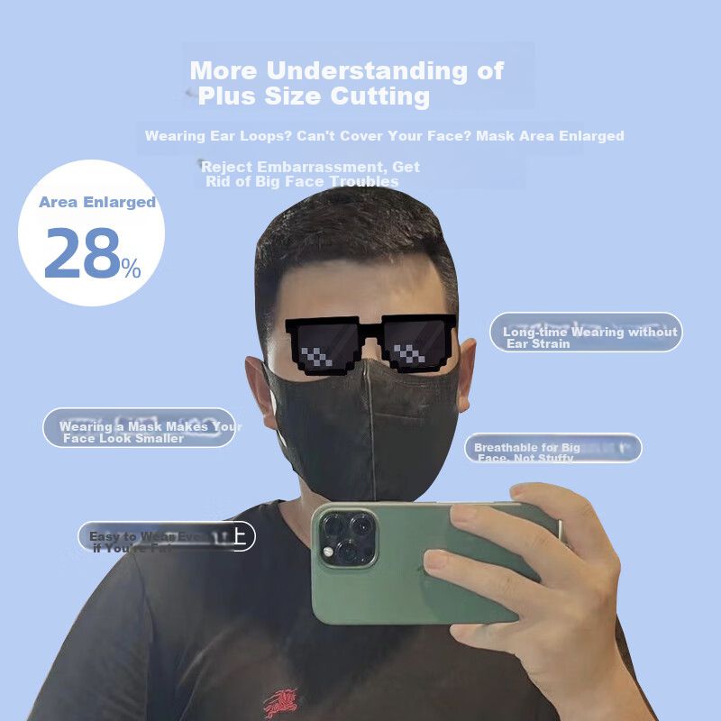 Cubrebocas Jiamei 3D Negro Talla M Y L Unisex
