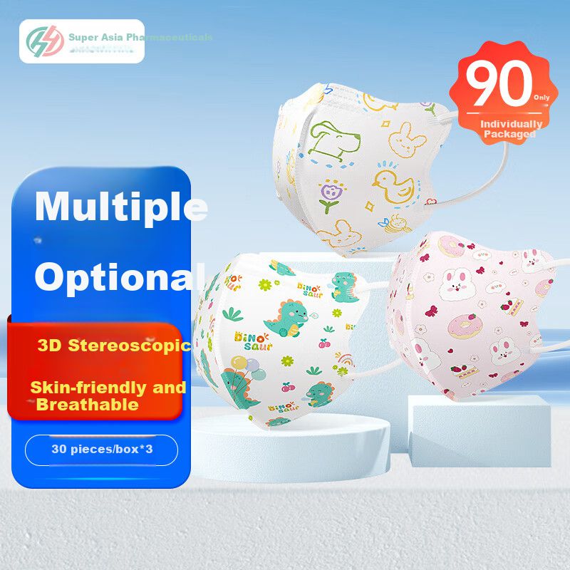 Salud y Equipamiento MédicoFarmaciaCubrebocasCubrebocas Super Asia 3D Estampado Niños 0-3 Años Paq. 90 Unisex