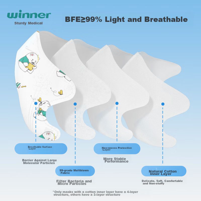 Salud y Equipamiento MédicoFarmaciaCubrebocasCubrebocas Winner Diseño 3D Talla M Para Niños 6-14 Años Unisex
