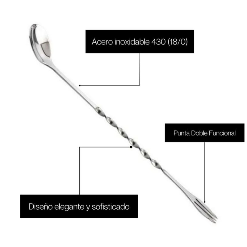 Cuchara Mezcladora Moven 31 cm Punta Dual Bar y Cocteles