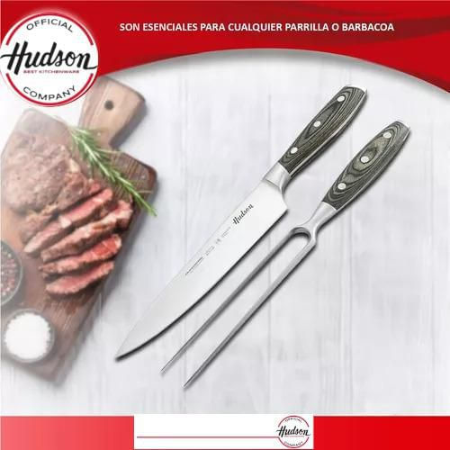 Cuchillo y Trinche Asador HUDSON mango madera 20cm Inoxidable