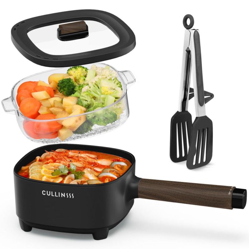 CULLINSSS - Olla eléctrica portátil de 2 l con vaporera, con revestimiento antiadherente de titanio mejorado, ideal para dormito