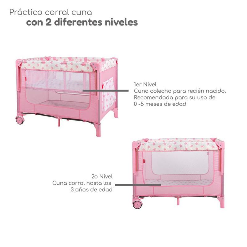 Cuna Colecho D’Bebé con 2 Niveles Mosquitero Acolchonado - Rosa