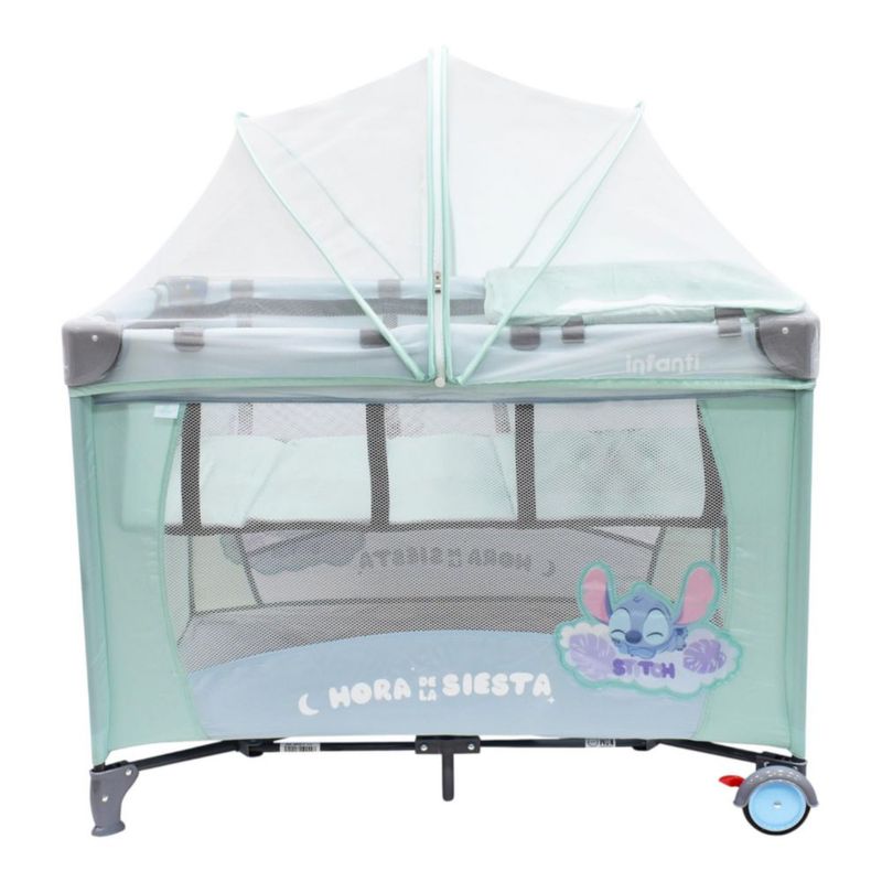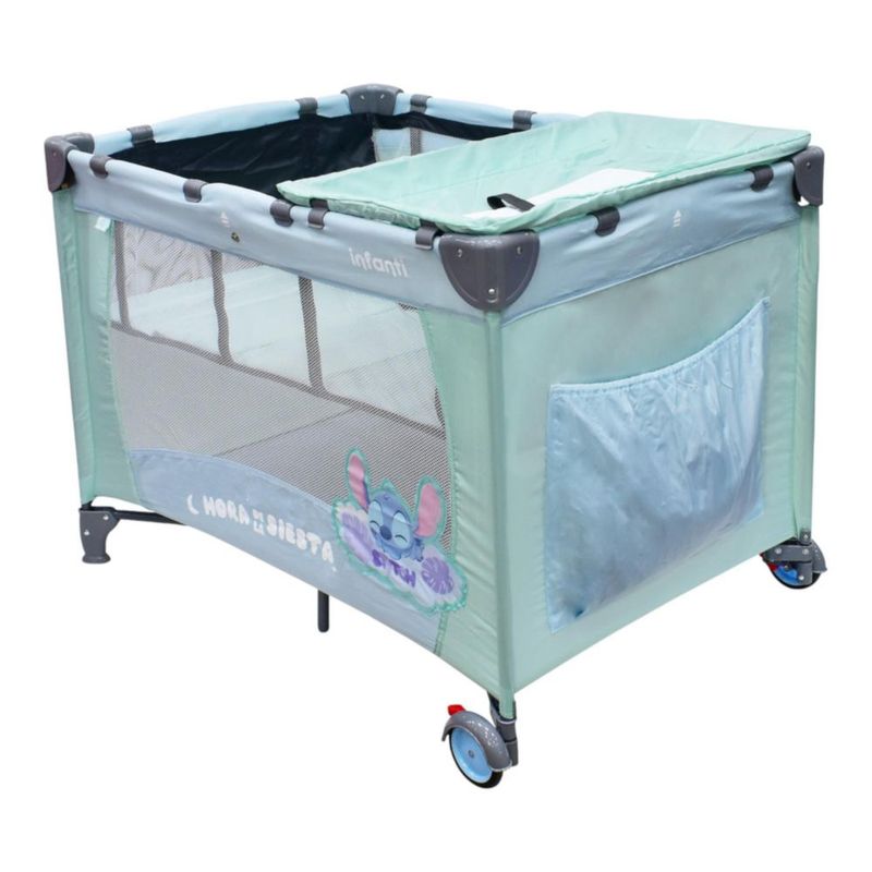Cuna Corral De Viaje Stitch Armado Sencillo Adaptable Seguro Verde