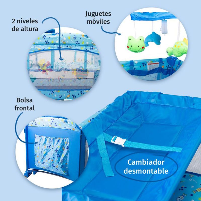 Cuna Corral Mecedor Para Bebé Starkids S12-7 Con Cambiador Azul