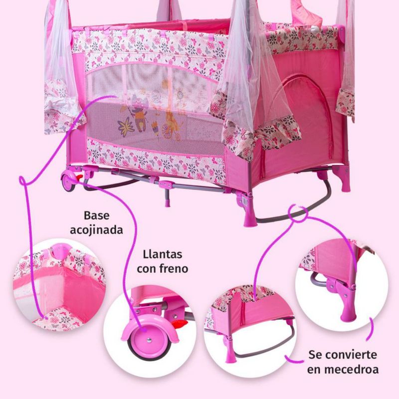Cuna Corral Mecedor Para Bebé Starkids S12-7 Con Cambiador Rosa