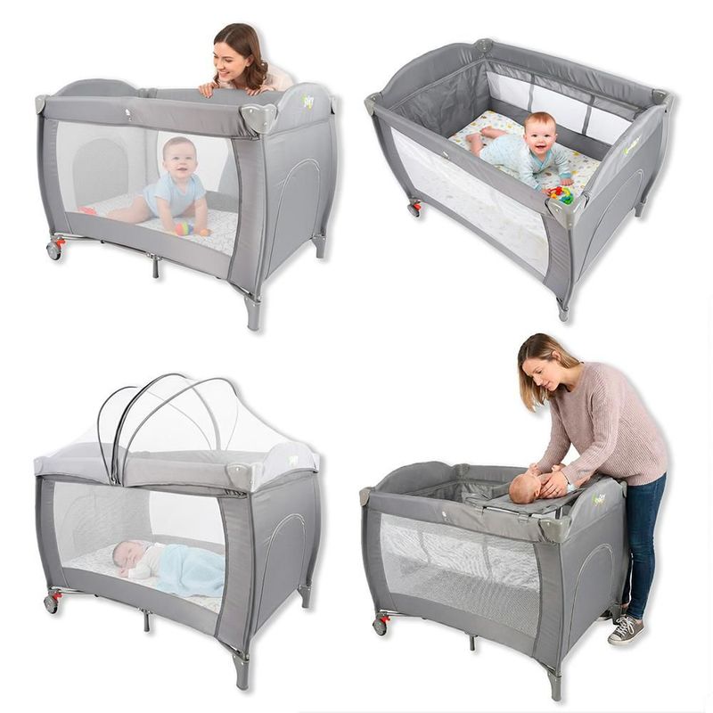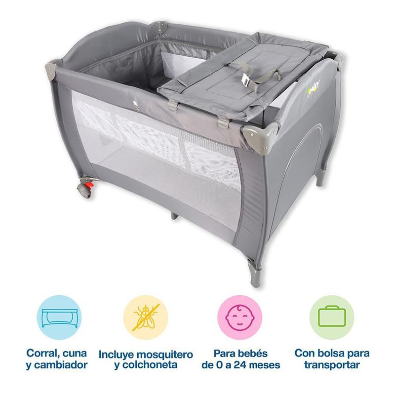 Cuna para Bebé de Viaje 4 en 1: Corral y Cambiador, con Colchoneta y Mosquitero