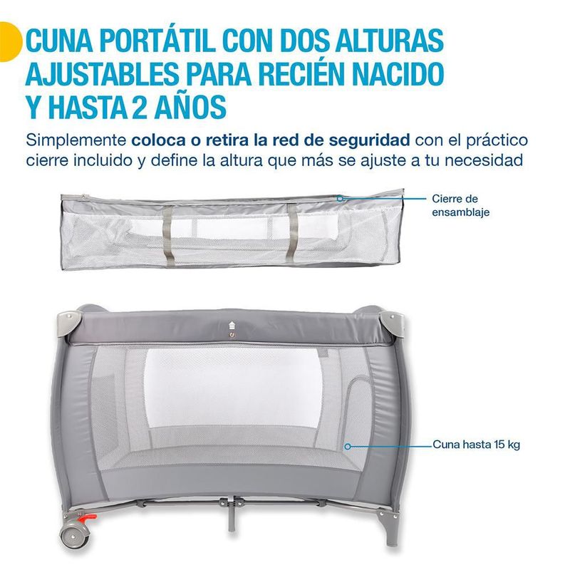 Bebés y juguetesBebésCunasCuna para Bebé de Viaje 4 en 1: Corral y Cambiador, con Colchoneta y Mosquitero