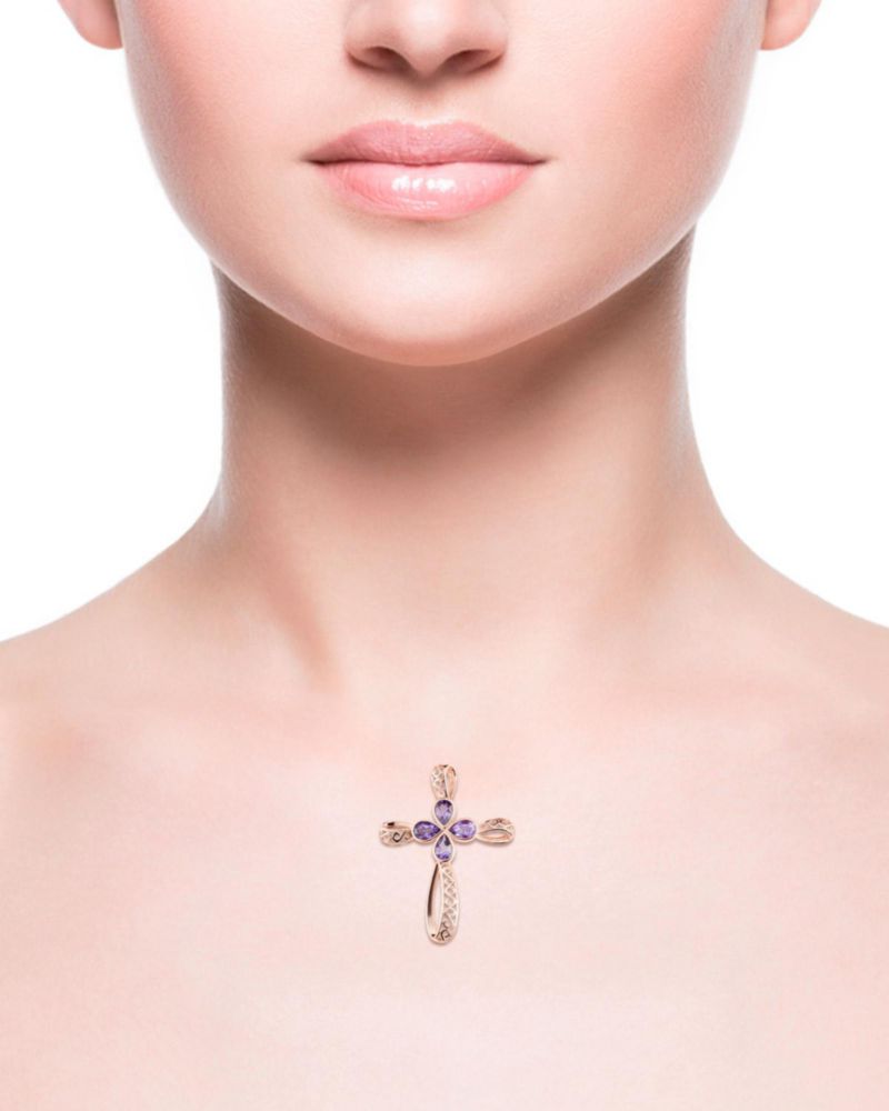 Dije Con Amatista En Oro Rosa 14K 4.9 Cm CHT-DR-120