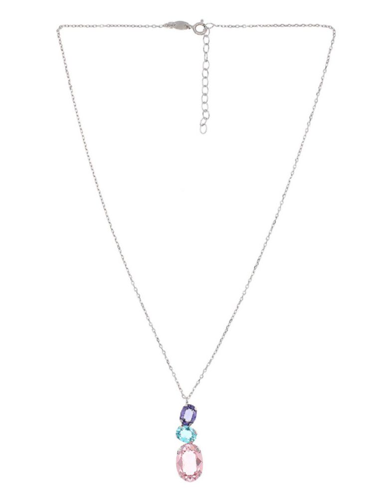 Dije Con Cadena De Plata 925 Con Zirconias De Colores (42 + 3Cm Aprox)