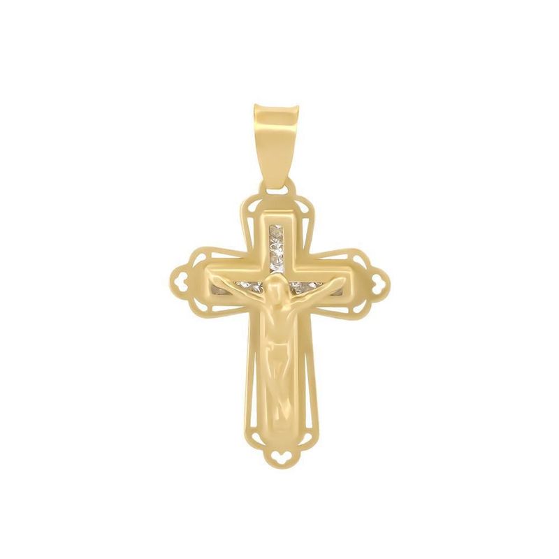 Dije cruz cristo contorno oro sólido bebé bautizo