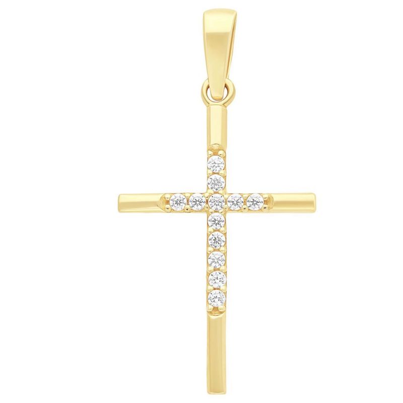 Dije Cruz doble con Circonias blancas Oro 10K Horoz V12 E694
