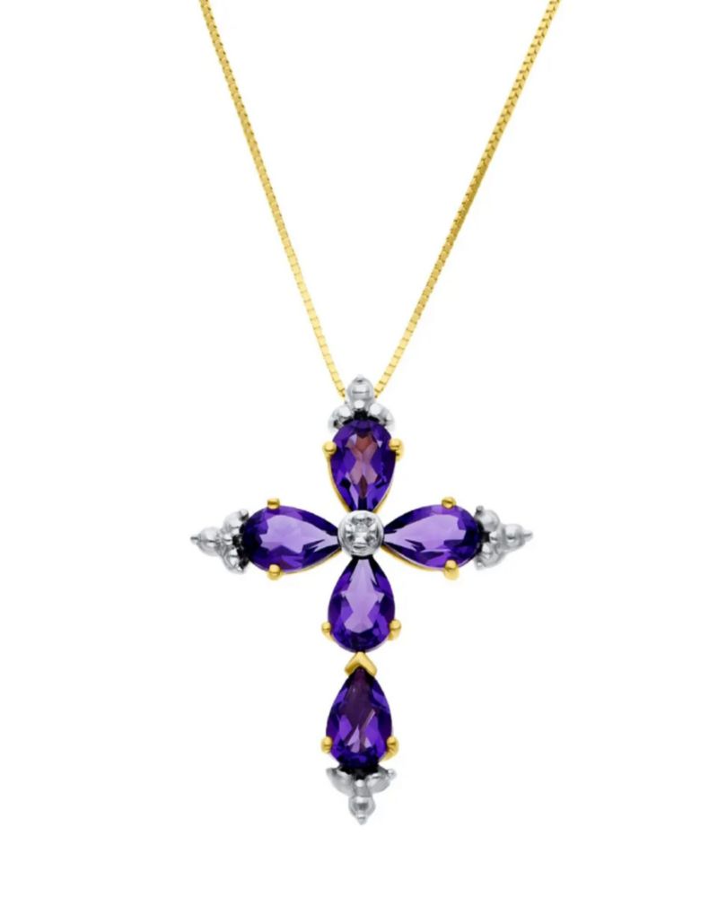 Moda y accesoriosJoyeríaCollares y DijesDIJE DE CRUZ (3CM) DE ORO AMARILLO CON CADENA 14K CON 1PTO DE DIAMANTE Y AMATISTA (H-I) (I1 - I2)
