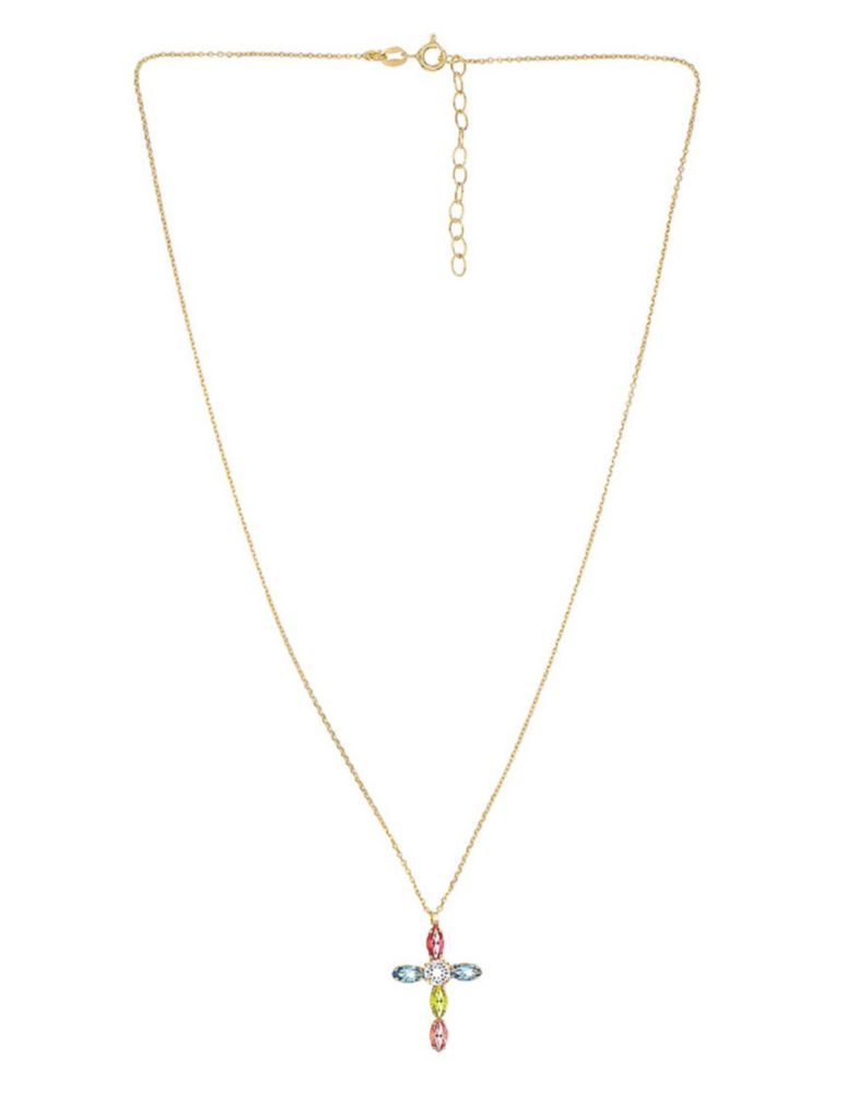 Moda y accesoriosJoyeríaCollares y DijesDije De Cruz Con Cadena De Plata 925 Con Zirconias De Colores (59 X 38Mm Aprox)