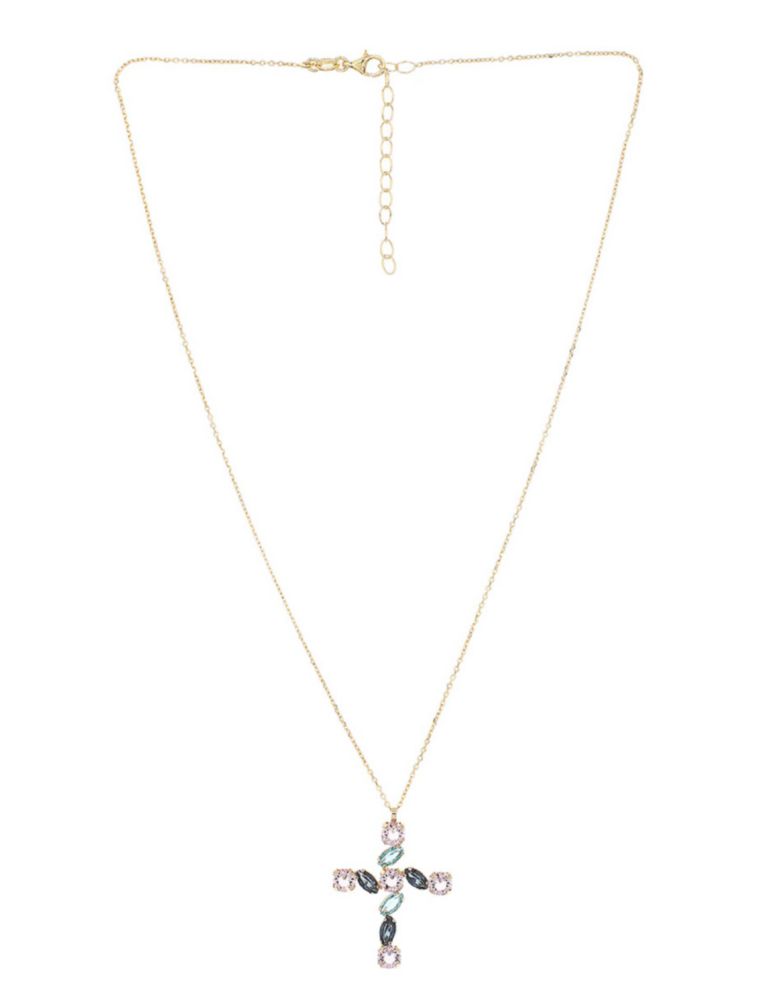 Moda y accesoriosJoyeríaCollares y DijesDije De Cruz Con Cadena De Plata Dorada 925 Con Zirconias De Colores (31 X 22Mm Aprox)