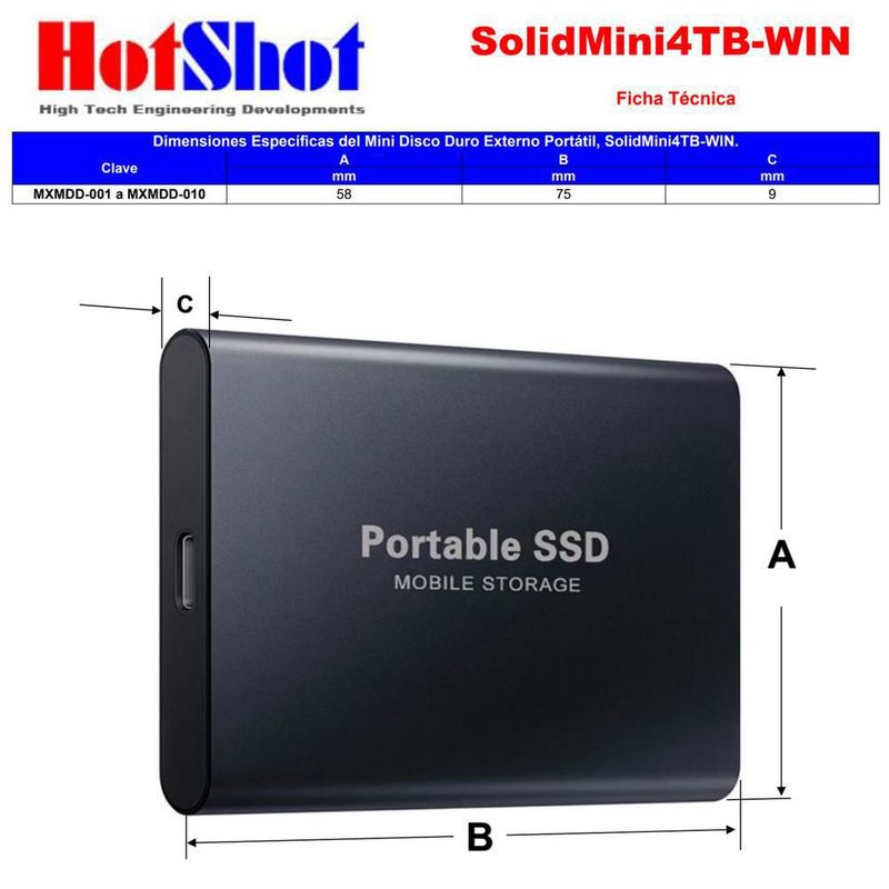 CómputoAlmacenamientoDiscos DurosDisco Duro SSD Portátil Tipo C 4TB SolidMini04TB-WIN MXMDD-006 Disco Portátil SSD Multimedia 4TB
