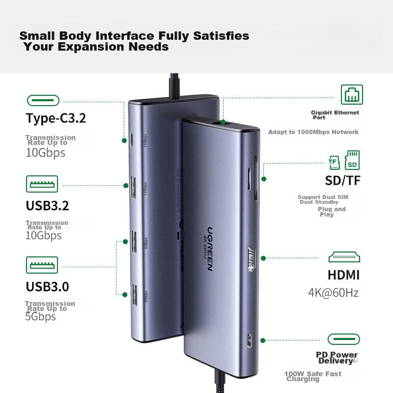 Dock De Expansión Usb-C 9 En 1 Ugreen Con Hdmi 4K Y Ethernet 10 Gbps