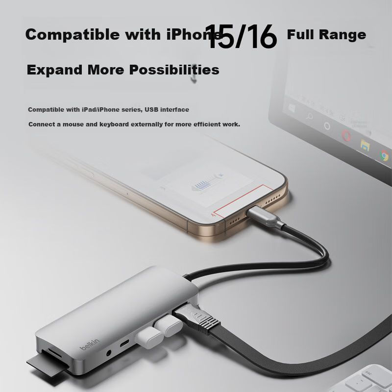 TelefoníaAccesorios para celularesCargadoresDock De Expansión Usb-C Belkin 7 En 1 Con Carga Rápida 100W
