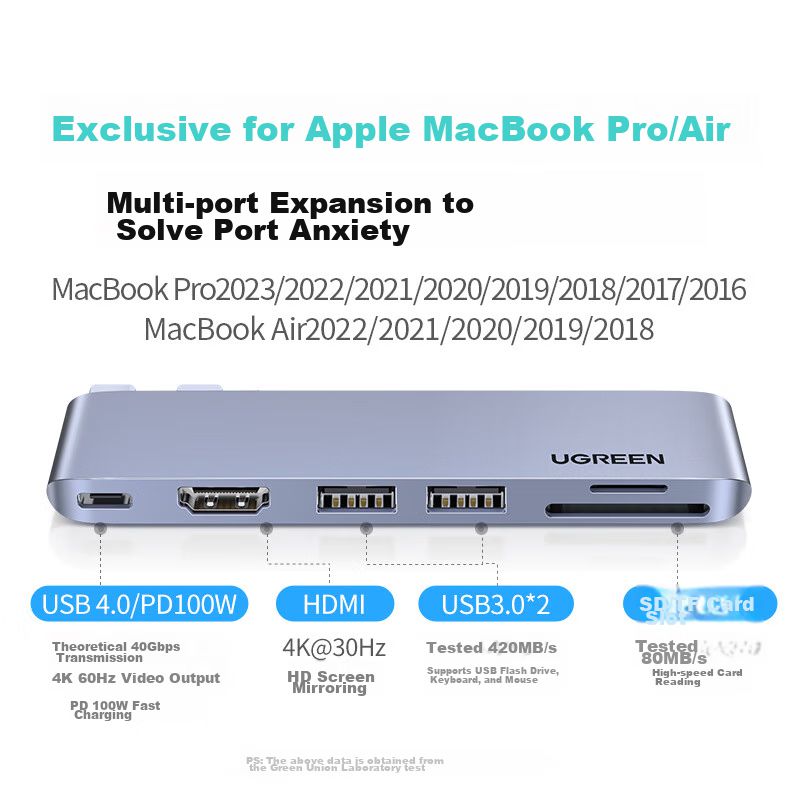 Dock De Expansión Usb Tipo-C Ugreen Con Hdmi 4K Y Carga Rápida 100W Para Macbook Pro Y Air