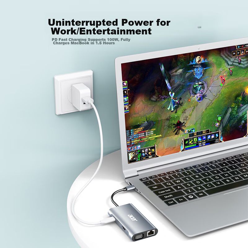 TelefoníaAccesorios para celularesCargadoresDocking Station 7 En 1 Acer Con Hdmi, Vga Y Ethernet Gigabit