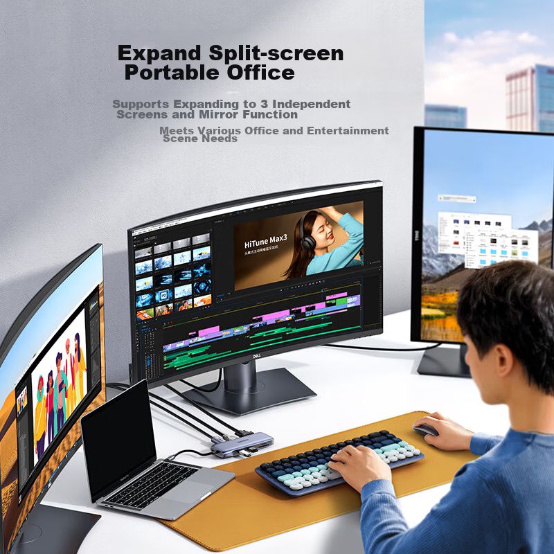 Docking Station Ugreen Type-C Para Tres Pantallas Con Ethernet Y Carga Rápida 100W