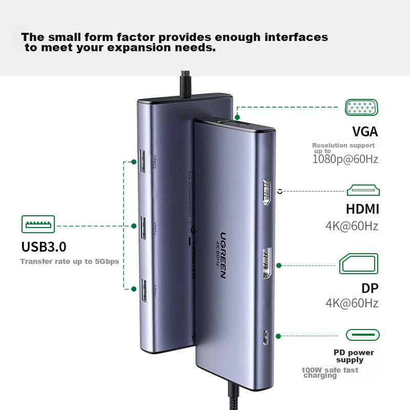 Docking Station Ugreen Usb-C 7 En 1 Con 4 Pantallas 4K 60Hz Y Carga Rápida 100W