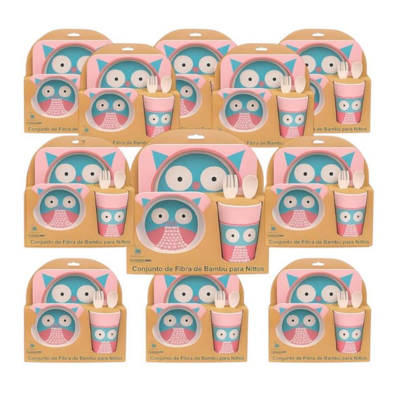 Domore Set 12 Platos Bebé Bambú 5 Pzs Vajilla Infantil Ecológica Sin BPA