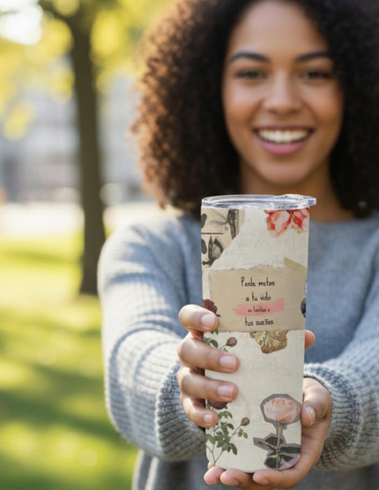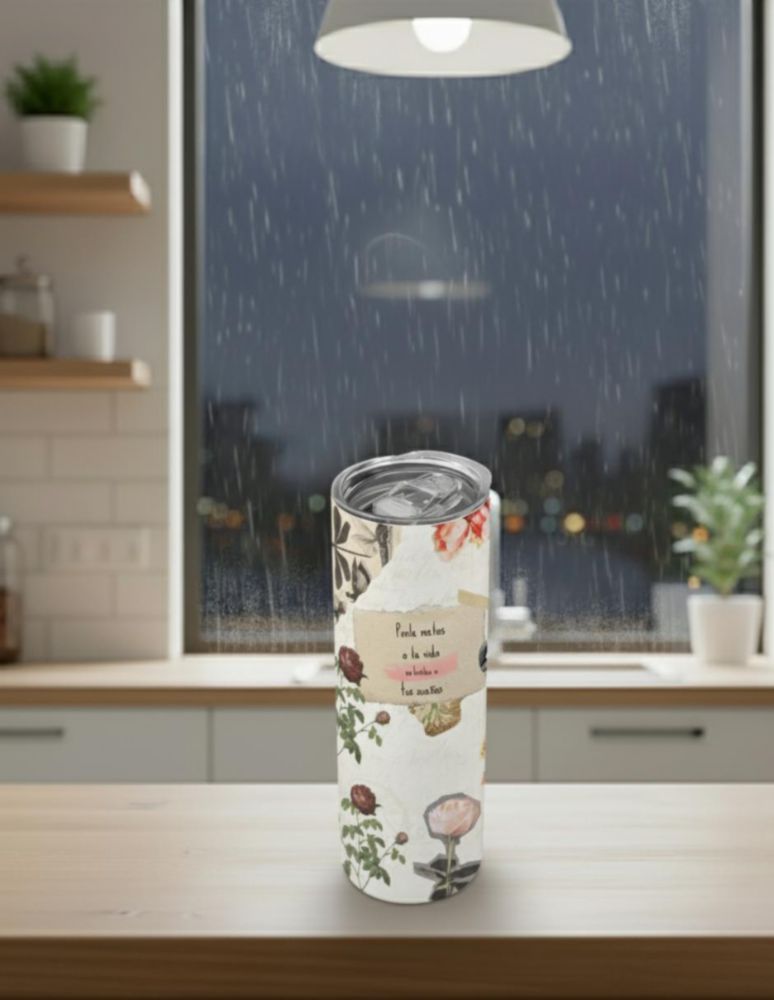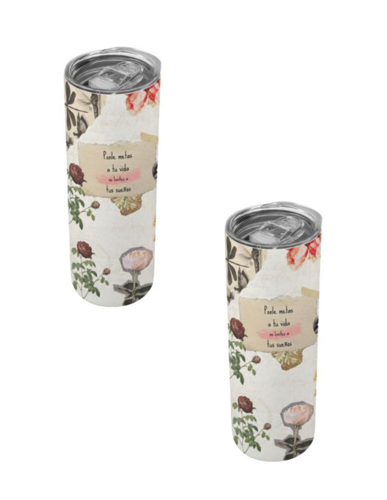 Duo de termos 590 ml. diseño divertido Ponle metas a tu vida, no limites a tus sueños, deja que la vida te sorprenda regalo original