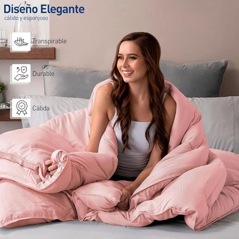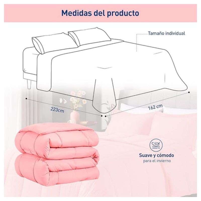 Edredón Bluelander Individual Hipoalergénico Acolchado Reversible Rosa