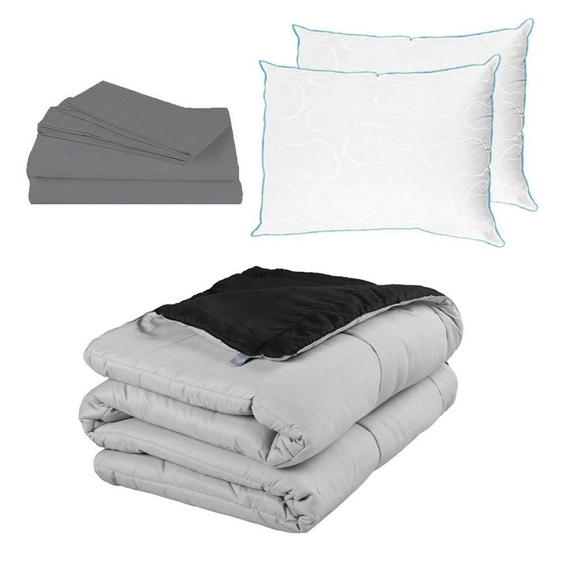 Edredon dos vistas King Size Rogga Negro-Gris+ Sabanas Basic Gris+ Almohada Osos 2 RGH