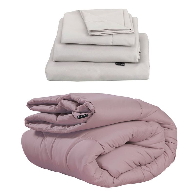 Edredón Individual Dicasa Homy Lila+ Sábanas Softy Gris CZD