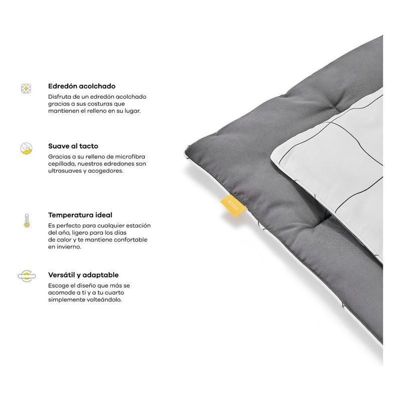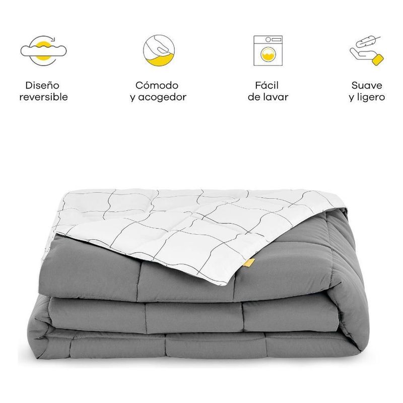 Edredón king nooz microfibra reversible acolchado suave lavable a máquina confort todo el año para dormitorio moderno gris