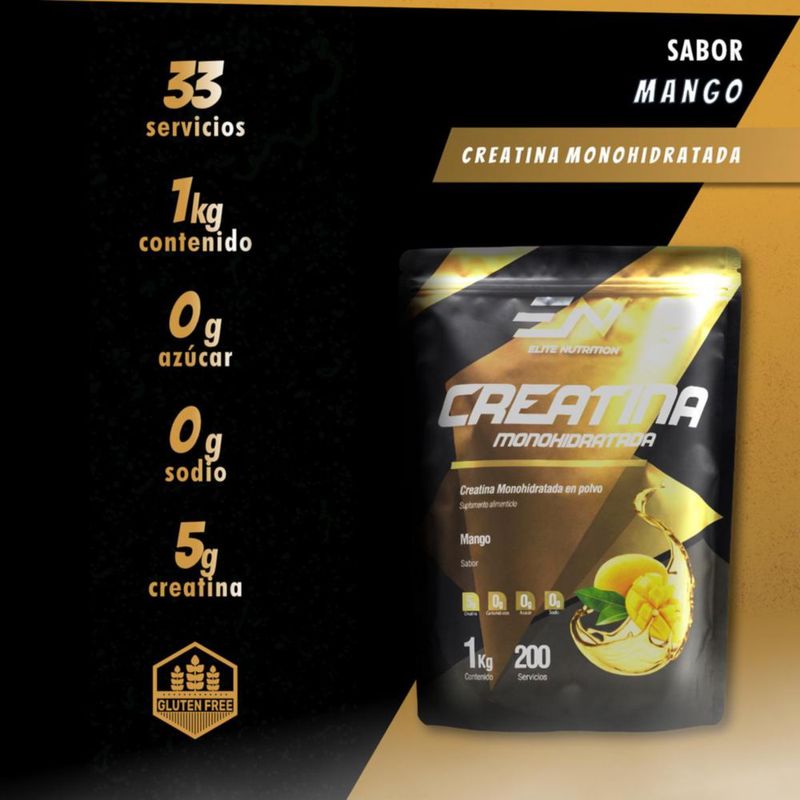 Elite Creatina Monohidratada 1kg Mango Polvo Fuerza y Rendimiento Gym