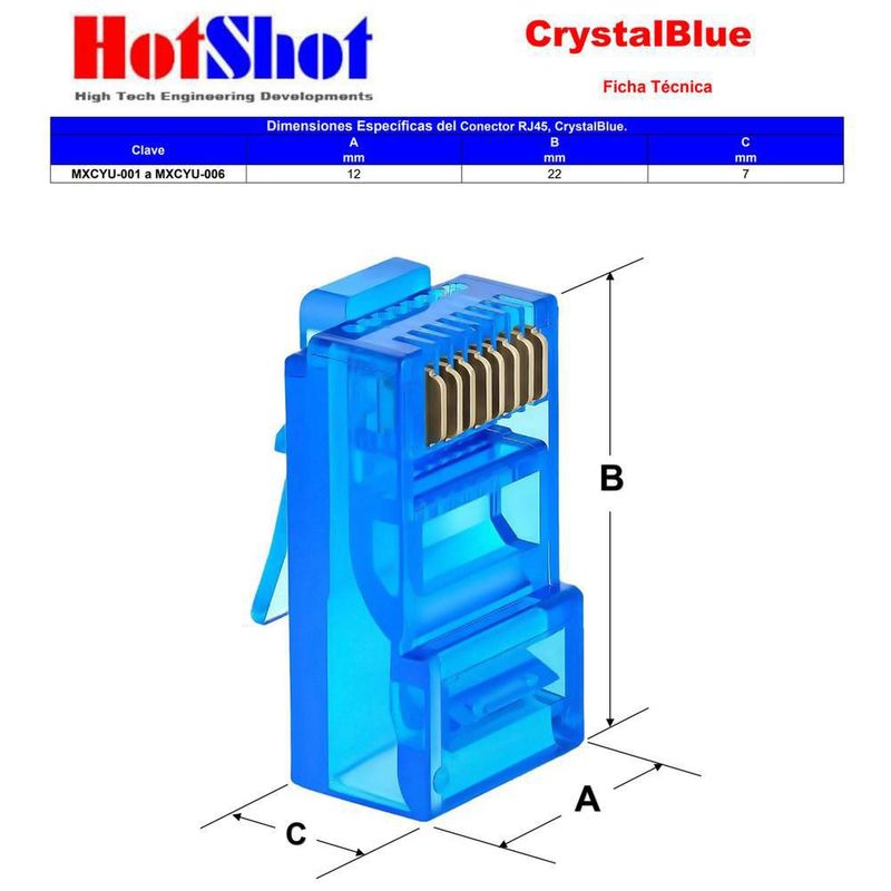 Enchufe RJ45 Conexion para Cable CrystalBlue MXCYU-003 Conector para redes residenciales