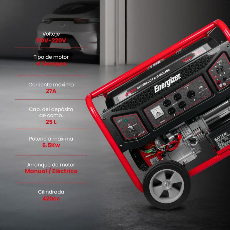 Energizer - Generador Portátil 6.5kW 420CC 25L Manual Regulador Voltaje