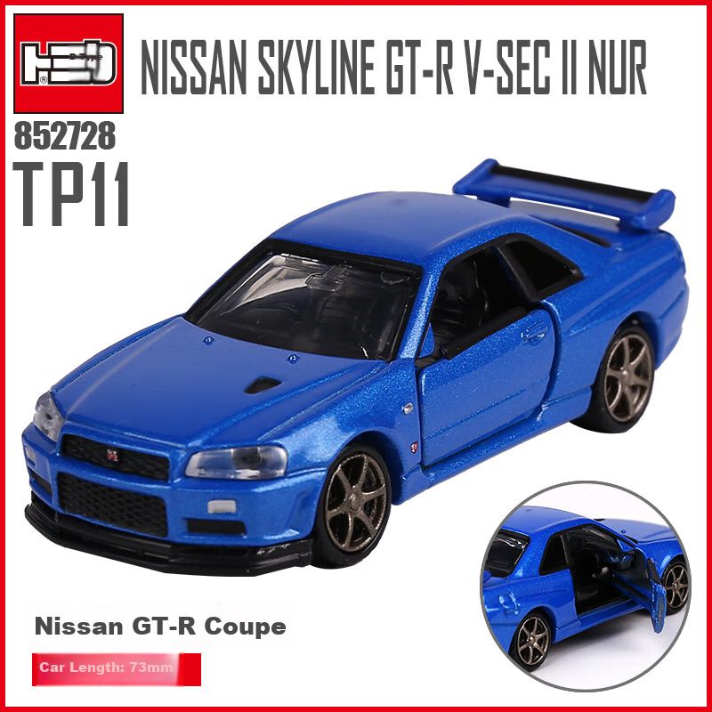 Escala 1/64, Coche de Aleación, Nissan Skyline GT-R V-Spec II Nur, 7.2 cm