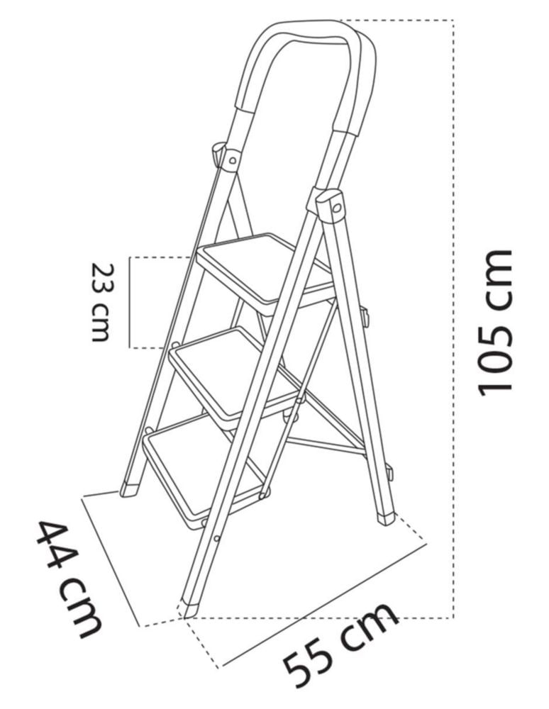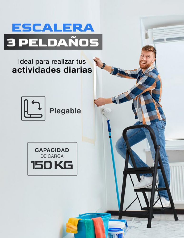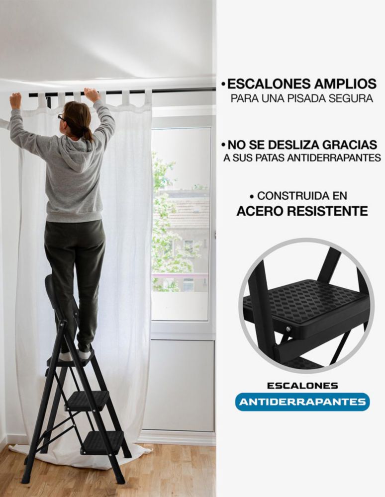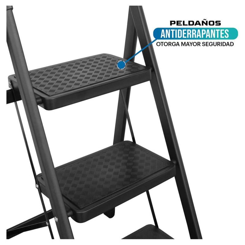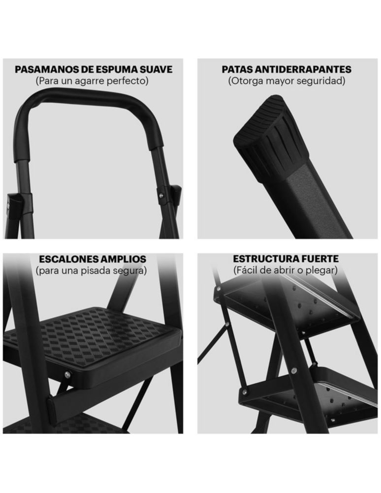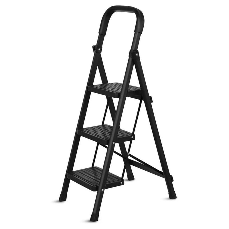 Escalera De Acero 3 Peldaños, Plegable Portátil Negra