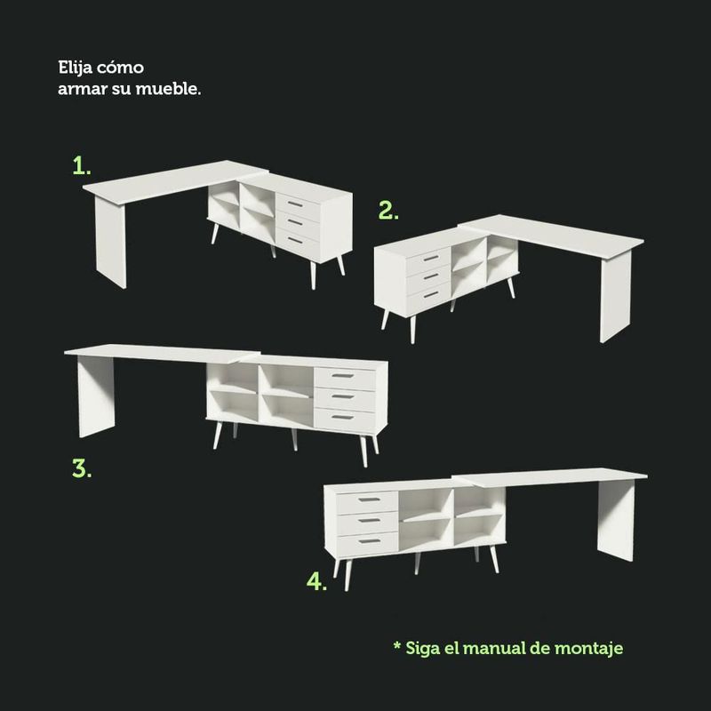 Escritorio de Esquina 3 Cajones Blanco Lisboa Madesa