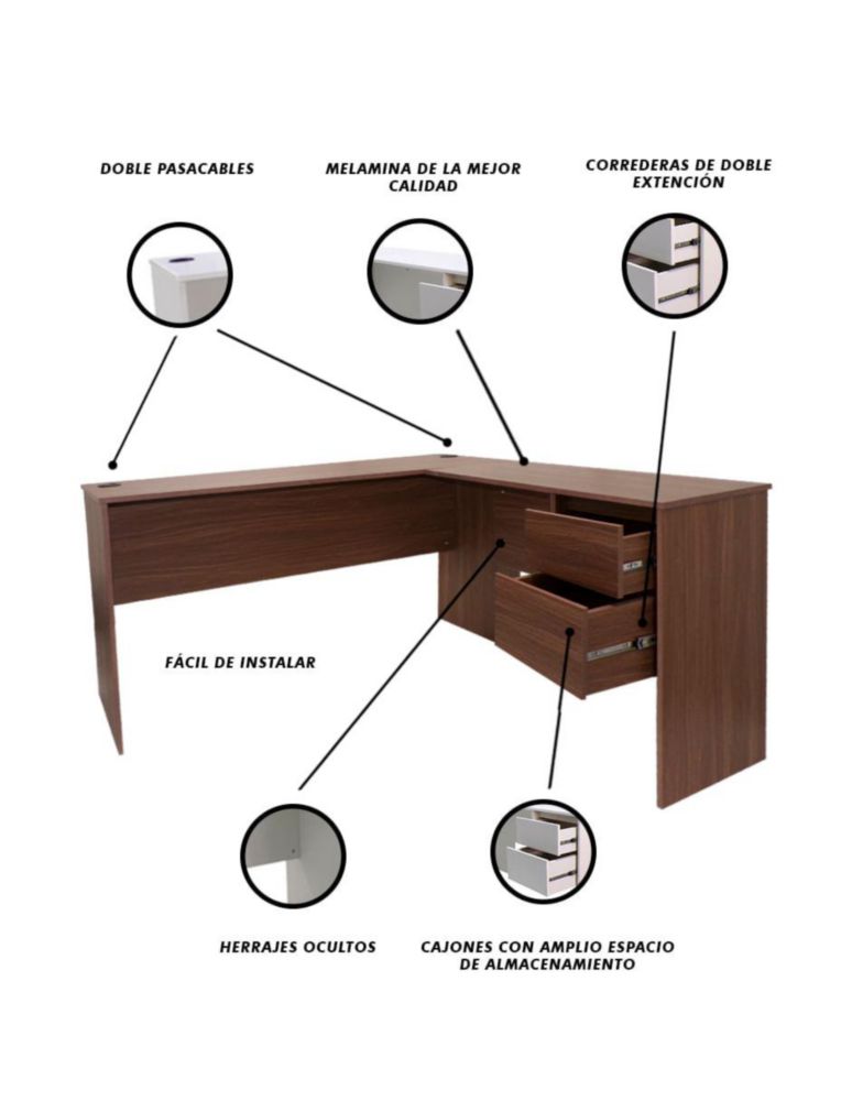 MueblesOficinaEscritoriosEscritorio En L Day LIly Con Cajón Y Pasacables