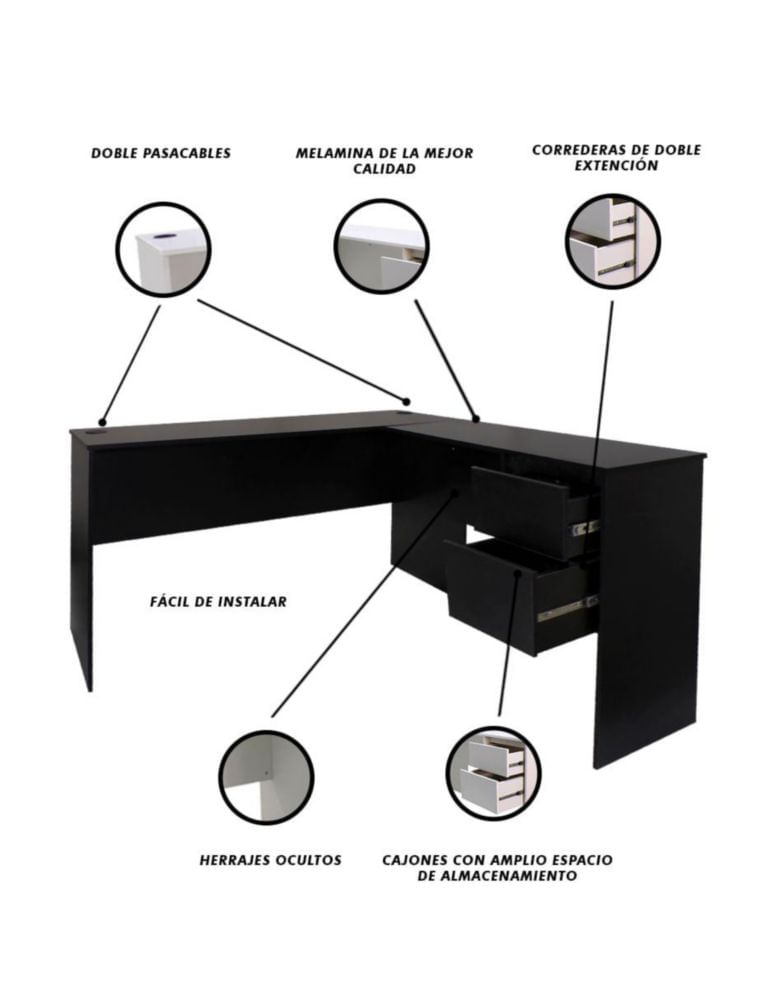 MueblesOficinaEscritoriosEscritorio En L Day LIly Con Cajón Y Pasacables