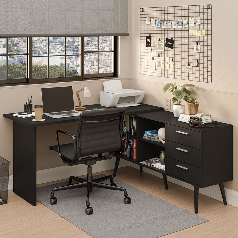 Escritorio en L Madesa Lisboa con Cajonera y Repisas MN