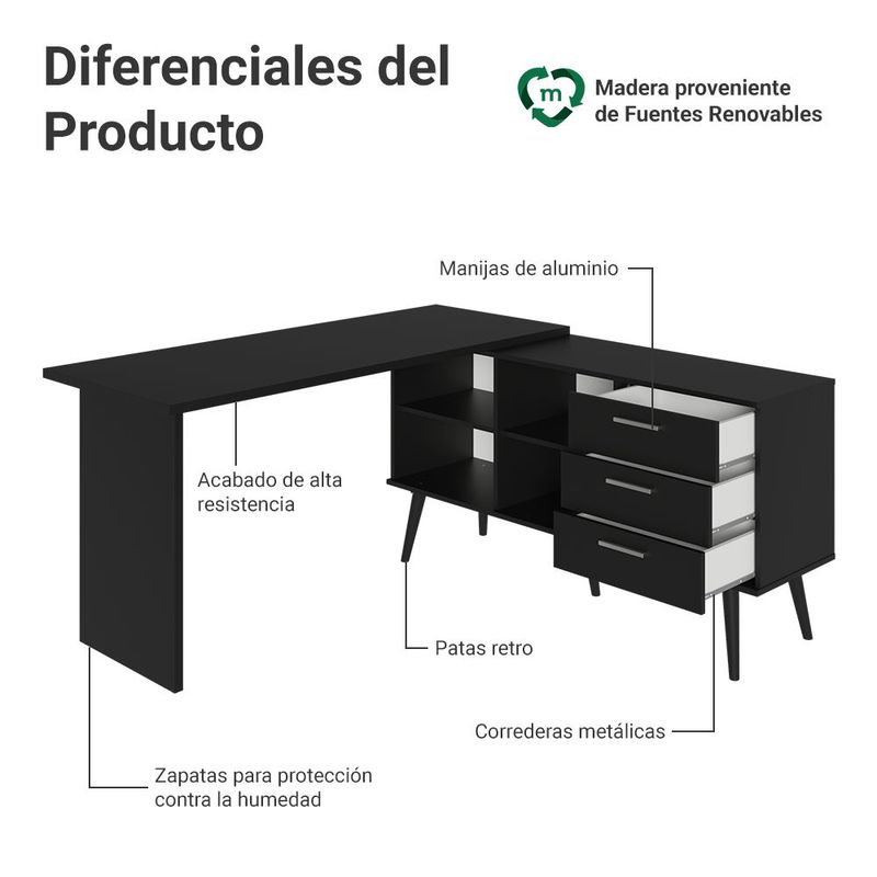 MueblesOficinaEscritoriosEscritorio en L Madesa Lisboa con Cajonera y Repisas MN